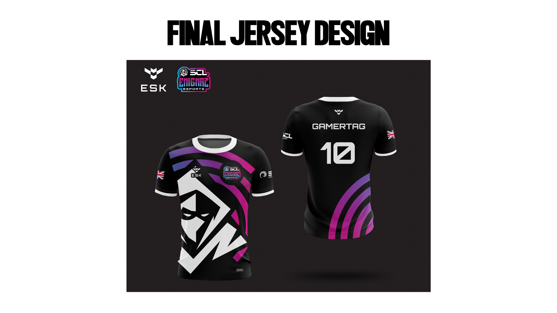 Led the full creative process for the official SCL Enigmaz x Guild Esports jersey, crafting the concept, visual identity, and final apparel design from scratch through to production-ready execution.